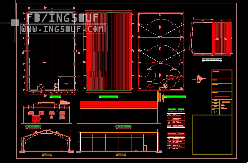 مخطط hangar تخزين مع غرفة تحكم اوتوكاد dwg